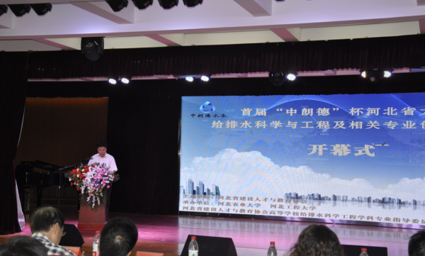 首屆中朗德杯河北省大學生給排水科學與工程創新創業大賽在農大舉辦,開幕式正在進行中